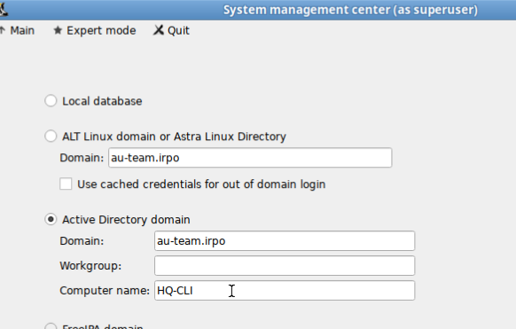 samba-tool domain provision --realm=au-team.irpo --domain=au-team --adminpass='P@ssw0rd' --dns-backend=SAMBA_INTERNAL --option="dns forwarder=192.168.1.10" --server-role=dc --use-rfc2307