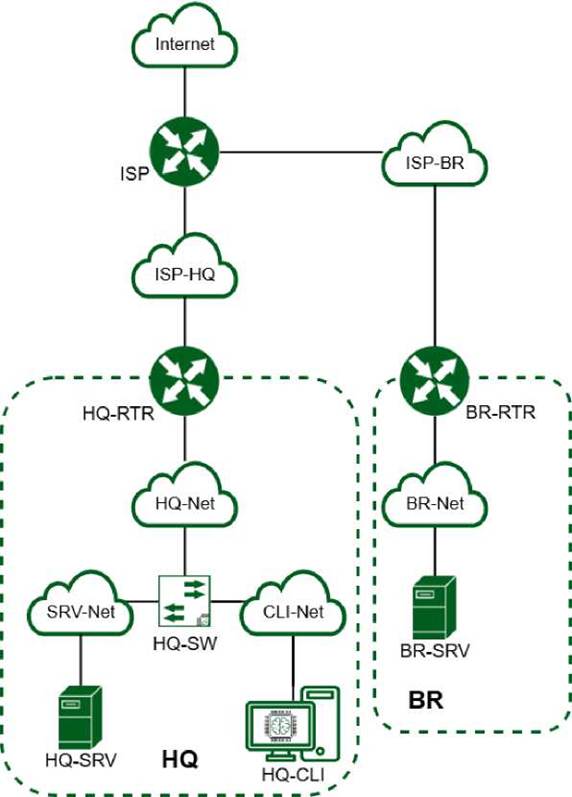 Необходимо разработать и настроить инфраструктуру информационнокоммуникационной системы согласно предложенной топологии (см. Рисунок 2).