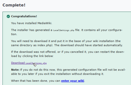 скачайте файл по ссылке Download «LocalSettings.php»
