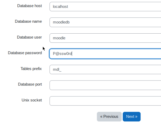 GRANT ALL PRIVILEGES ON moodledb.* TO moodle@localhost IDENTIFIED BY 'P@ssw0rd';